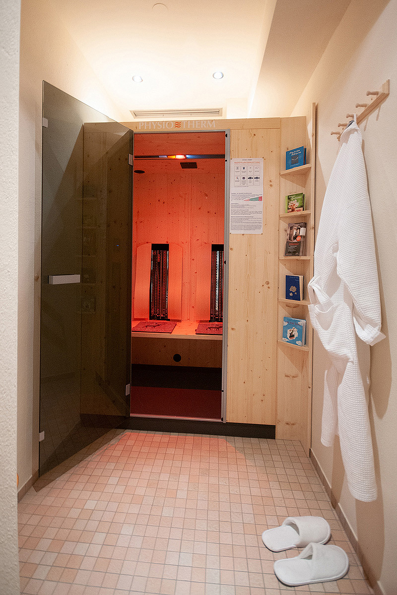 finská sauna, pára, infrakabina, relaxační koutek s lehátky; malá posilovna, stolní fotbal, stolní tenis