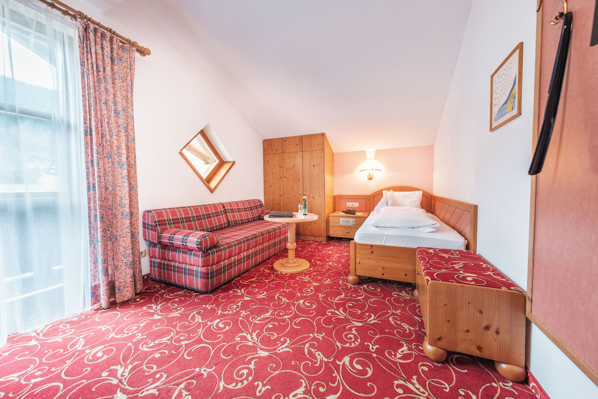 20 m² - pokoj s 1 samostatným lůžkem, sociální zařízení se sprchou či vanou, asi z 50% balkon