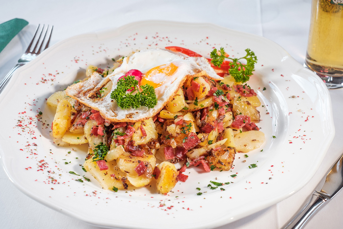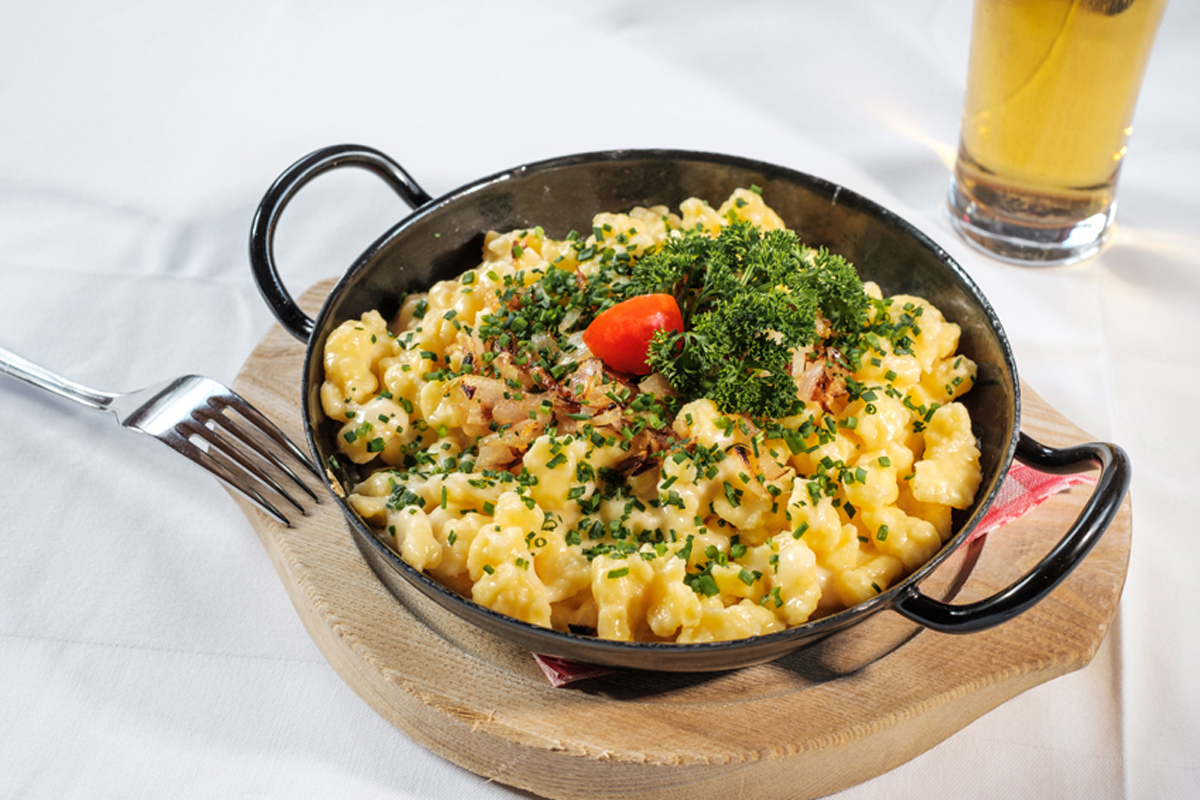 servírované 4chodového menu s výběrem hlavního jídla s přílohou či formou bufetu, salátový bufet, nápoje za poplatek; 1x týdně "Štrůdl odpoledne" s ochutnávkou těchto místních tradičních dezertů (zpravidla středa)
