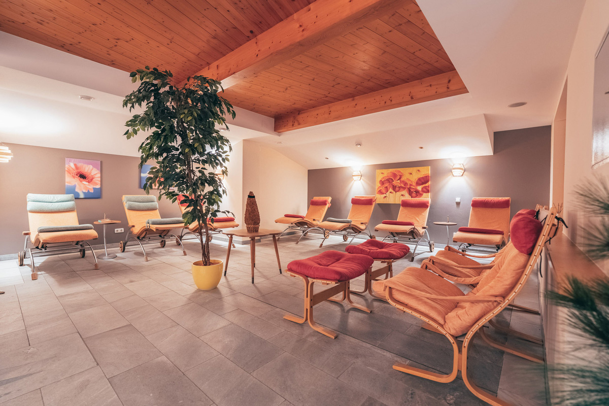 bazén 48 m² s masážními tryskami propojený s venkovním vyhřívaným bazénem, vířivka#, sauna#, venkovní panoramatická sauna#, pára#, horizontální solárium*#, relaxační koutek s lehátky#, masáže*#, kosmetiské služby*#; posilovna, stolní tenis; služby označené # mohou využívat děti až od 14 let