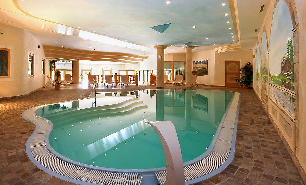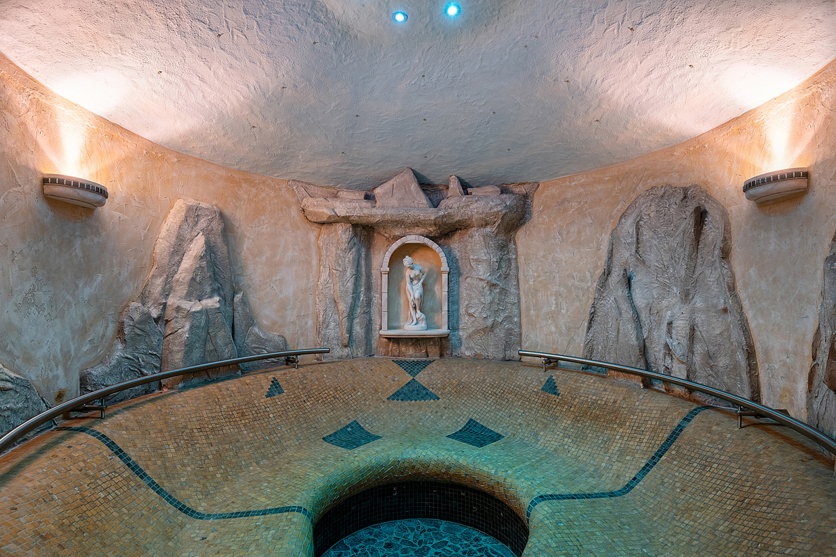 bazén 66 m², finská sauna, bio sauna, pára, infrakabina, horizontální solárium*, Kneippův chodník, relaxační koutek s lehátky, sluneční terasa 430 m² s lehátky