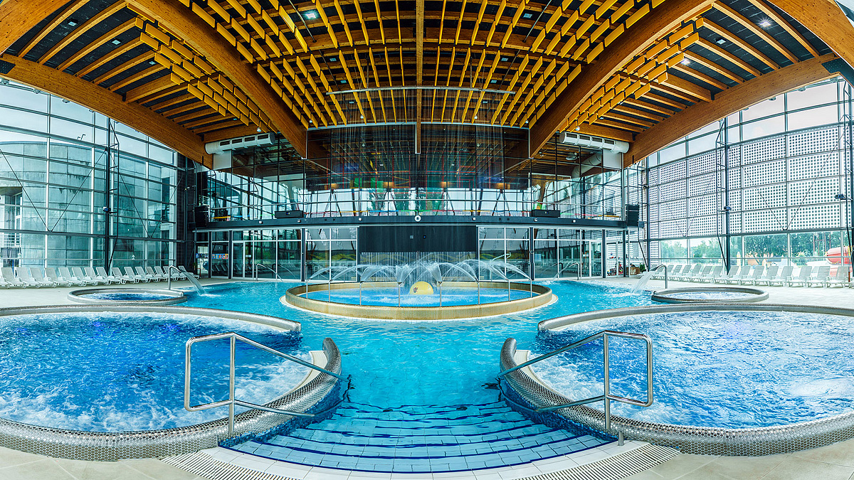 aquapark v ceně - (relaxační část: 3 x venkovní termální bazén, 2x vnitřní termální bazén, finská a parní sauna, vodní bar, 50 m plavecký bazén); wellness centrum - (8x sauna (finská, solní, mentolová, suchá, infra), relaxační bazén se zátokou lásky, vířivky, relaxační místnost s biokrbem, sněžné jeskyně); fitness centrum, kryokomora*, klinika krásy*