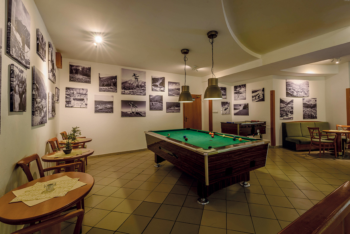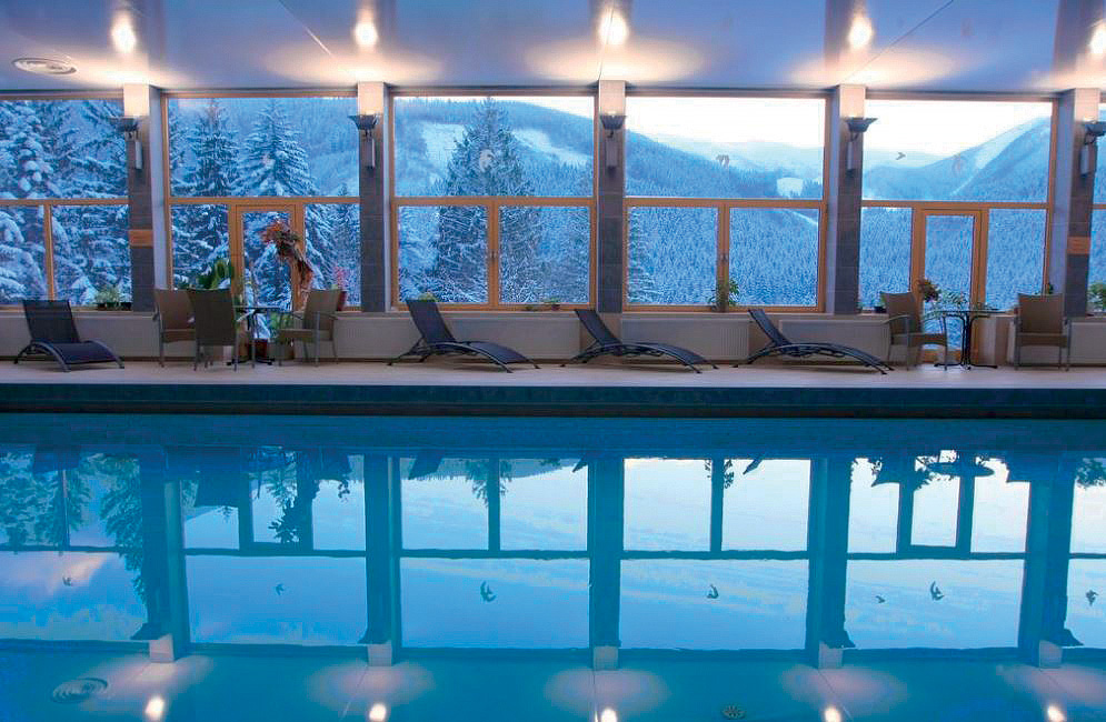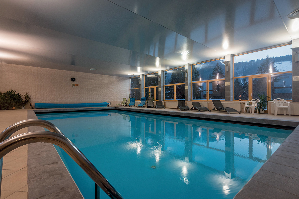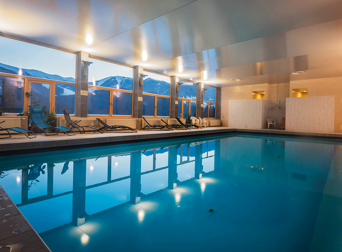 bazén délky 13 m s lehátky, sauna*, masáže*, bowling*, biliár*, stolní tenis*, stolní fotbal*
