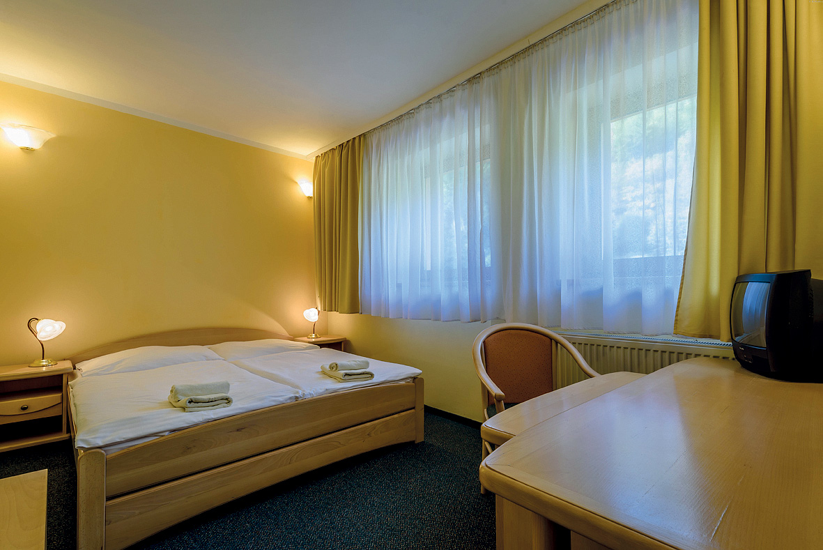 pokoj s manželskou postelí či 2 samostatnými lůžky, obsazený 1 osobou, sociální zařízení se sprchou