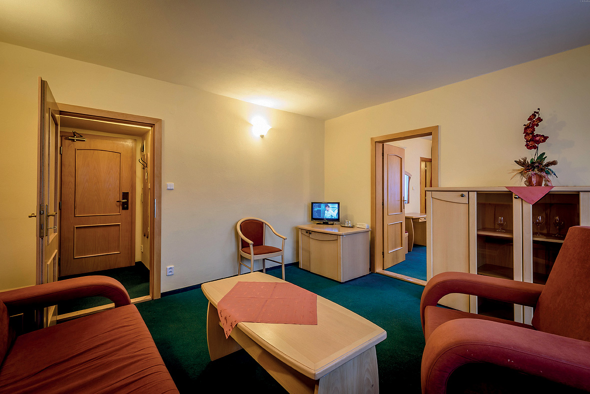 * maximální obsazenost pokoje Comfort 2+1, resp. Family Comfort 4+2, resp. Apartmán 2+2 jsou 2 dospělé osoby a 1 dítě do nedovršených 12 let, resp. 4 dospělé osoby a 2 děti do nedovršených 12 let, resp. 2 dospělé osoby a 2 děti do nedovršených 12 let