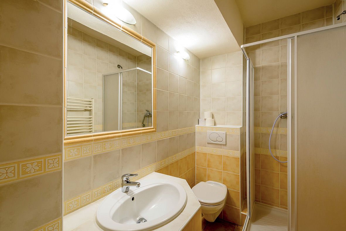 ložnice s manželskou postelí či 2 samostatnými lůžky, obývací pokoj s rozkládacím gaučem pro 1-2 děti do 12 let, 1 sociální zařízení se sprchou, 1 sociální zařízení s vanou