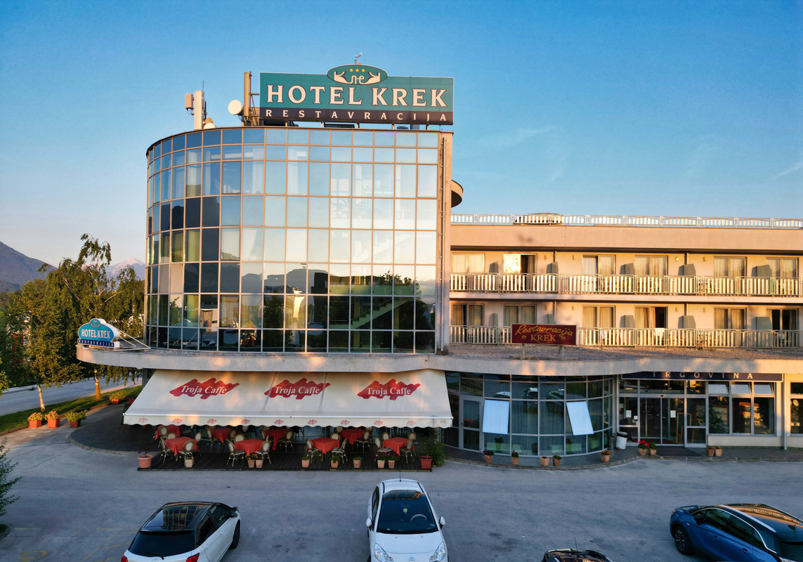 Hotel Krek leží u sjezdu z dálnice k jezeru Bled, v blízkosti obchodní zóny. Jeho strategická pozice je výhodná především pro rychlé připojení pro tranzitní dopravu při cestě dále na jih.