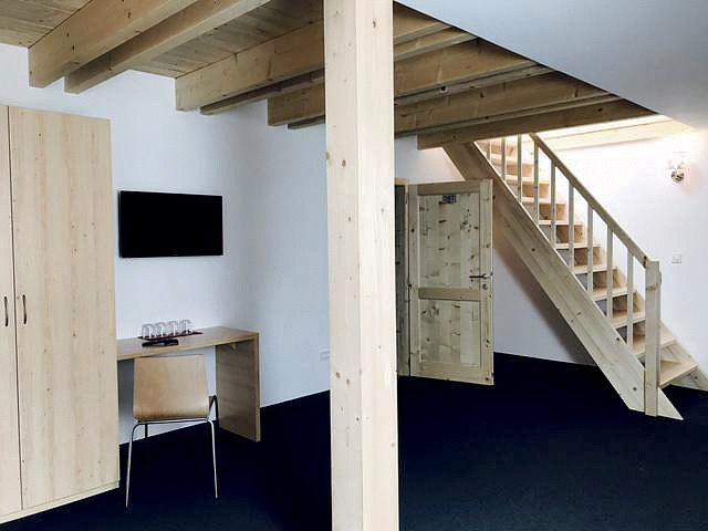 pokoj s manželskou postelí, 3. a 4. lůžka pevná, sociální zařízení; za příplatek lze objednat též pokoj až pro 6 osob