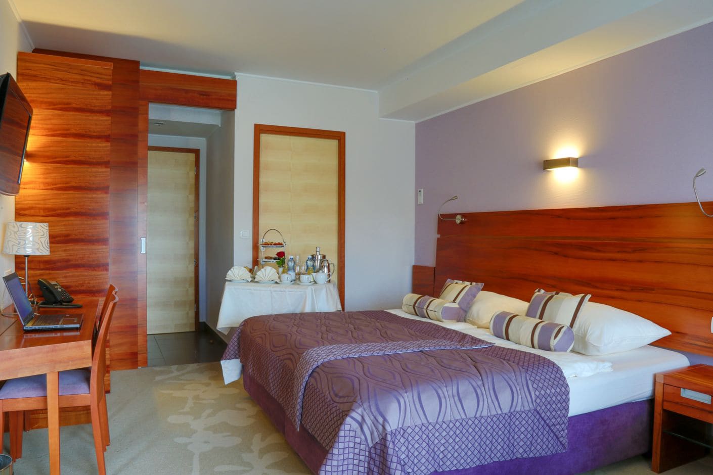 TV, telefon, fén, minibar*, trezor, wi-fi připojení k internetu, župan a wellness taška