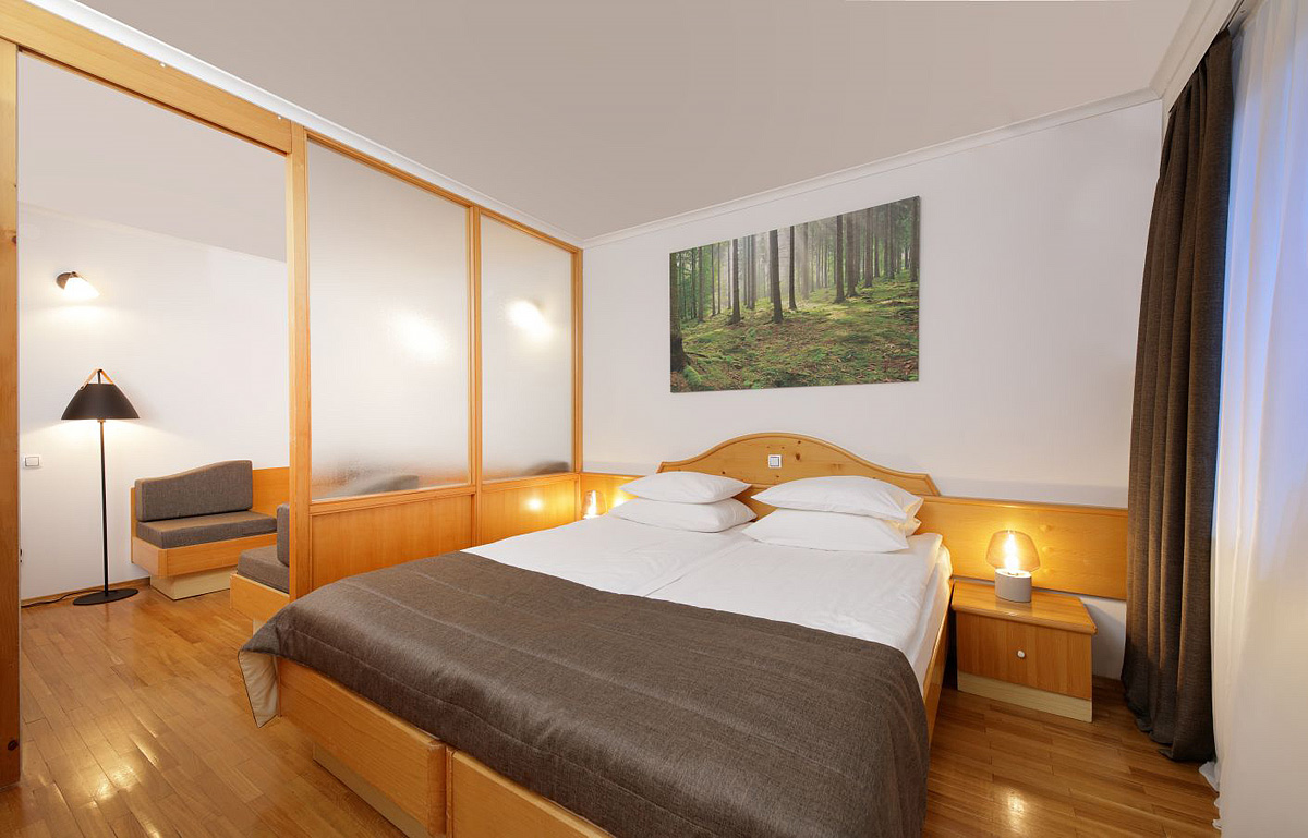 součást hotelového komplexu se společným relaxačním a sportovním zázemím, propojen s hotelem Rogla S***