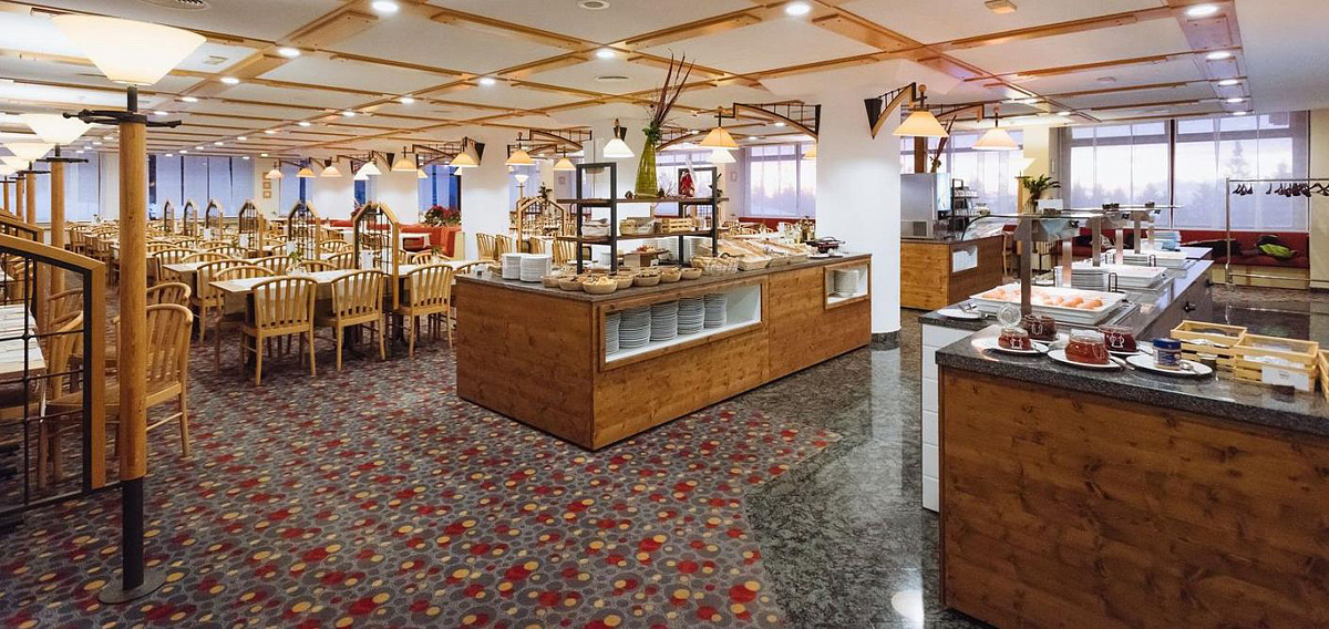 formou bufetu, nápoje za poplatek; 1x týdne tematická večeře
