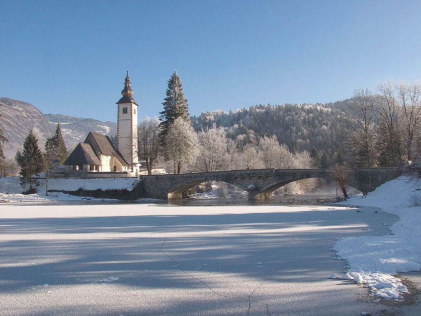 Ať už se vydáte vzhůru lanovkou, či se budete spouštět ze svahů s lyžemi na nohou, bruslit na zamrzlých jezerech nebo běžkovat v upravených stopách, vždy si budete se zatajeným dechem vychutnávat nádherná panoramata s nejvyšší horou Slovinska Triglavem, Bohinjským jezerem a okolním národním parkem. Jednou z nejkrásnějších částí Slovinska je Bledské jezero s kostelem na ostrově, jenž je zcela jistě nejfotografovanějším místem v zemi.