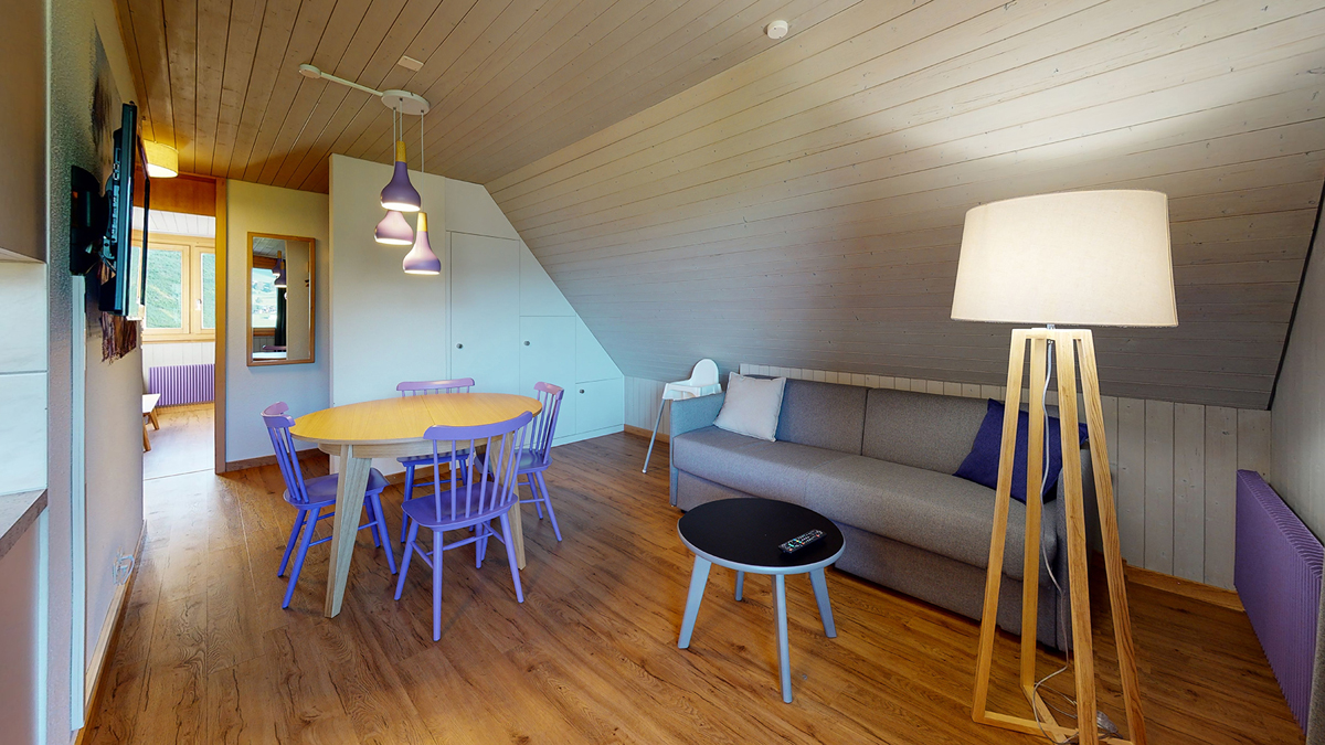 bilo 4 - 40 m² - ložnice se 2 samostatnými lůžky, obývací pokoj s kuchyňským koutem a rozkládacím gaučem pro 2 osoby, sociální zařízení, balkon; byty jsou lehce prostornější a moderněji zařízené, nežli byty typologie Classic