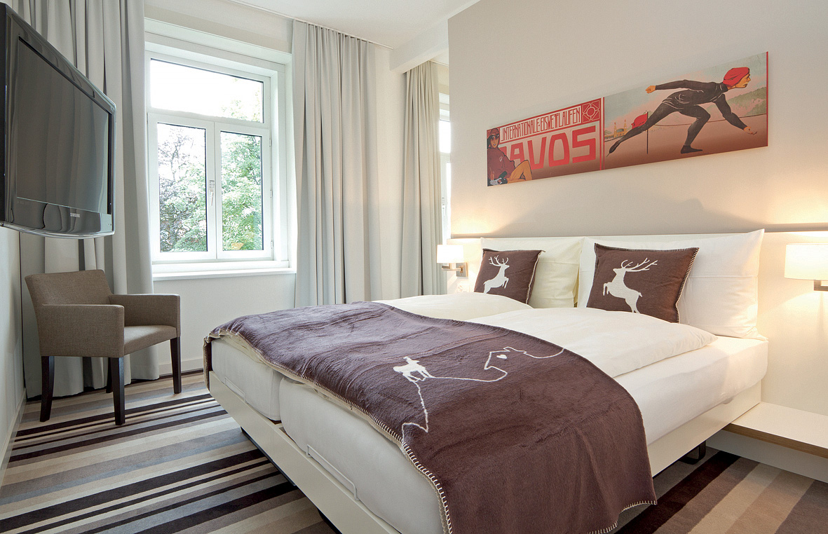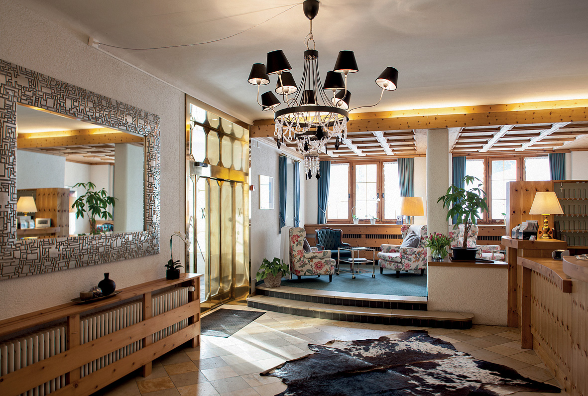 recepce / lobby, jídelna pro snídaně, restaurace Bistro National, společenská místnost, seminární místnost až pro 30 osob, wi-fi připojení k internetu, úschovna lyží a lyžařských bot, výtah, garážová stání*, nabíjecí stanice elektro aut*, hotelový shuttle bus do střediska Jakobshorn