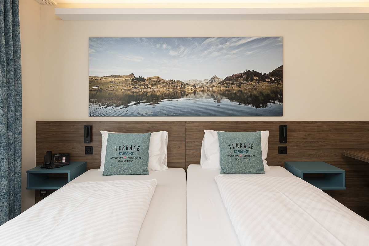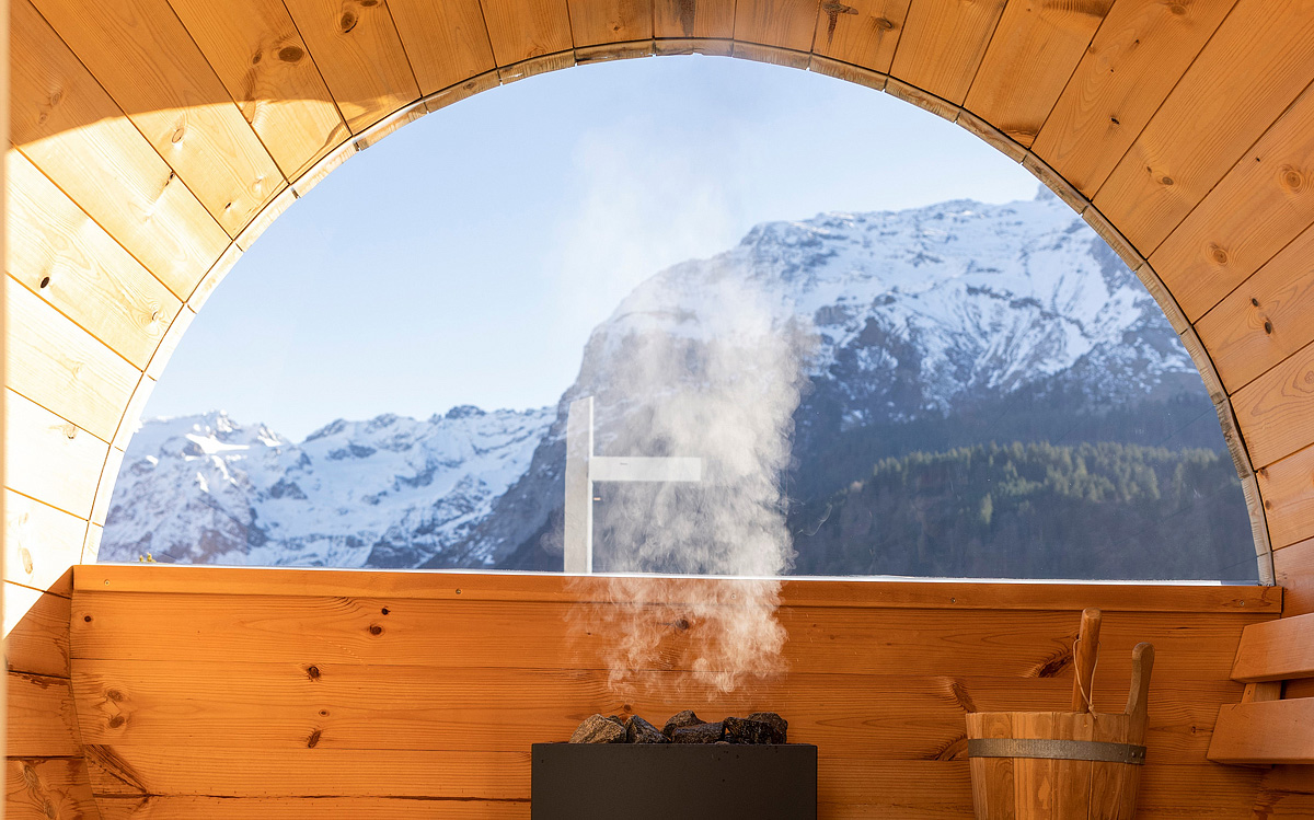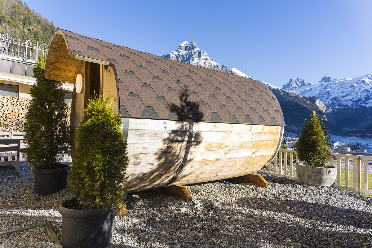hotel je tvořen hlavní (původní) a vedlejší budovou, které jsou vzájemně propojeny; obě budovy se nachází ve svahu nad střediskem Engelberg; hotel je přístupný buď po silnici (velké stoupání, v zimě často nutnost použít sněhové řetězy) či hotelovým tunelem a výtahem vedoucím až do hotelového lobby; vstup do tunelu ústícího k hotelovému výtahu je přímo u venkovního parkoviště dole ve středisku; uvedené vzdálenosti jsou měřeny od začátku hotelového tunelu