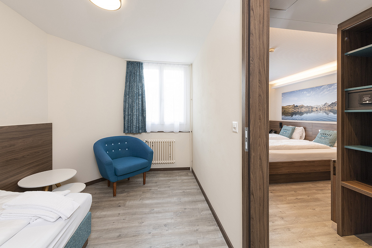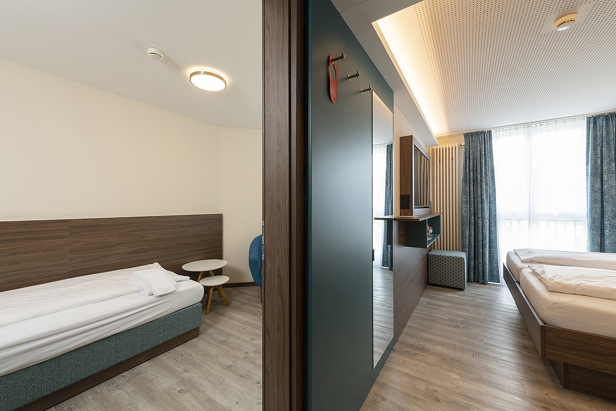 36 m² - 2 spojovací chodbou propojené komfortní pokoje, každý s manželskou postelí s oddělitelnými lůžky, min. 1x sociální zařízení; minimální obsazenost jsou 4 osoby
