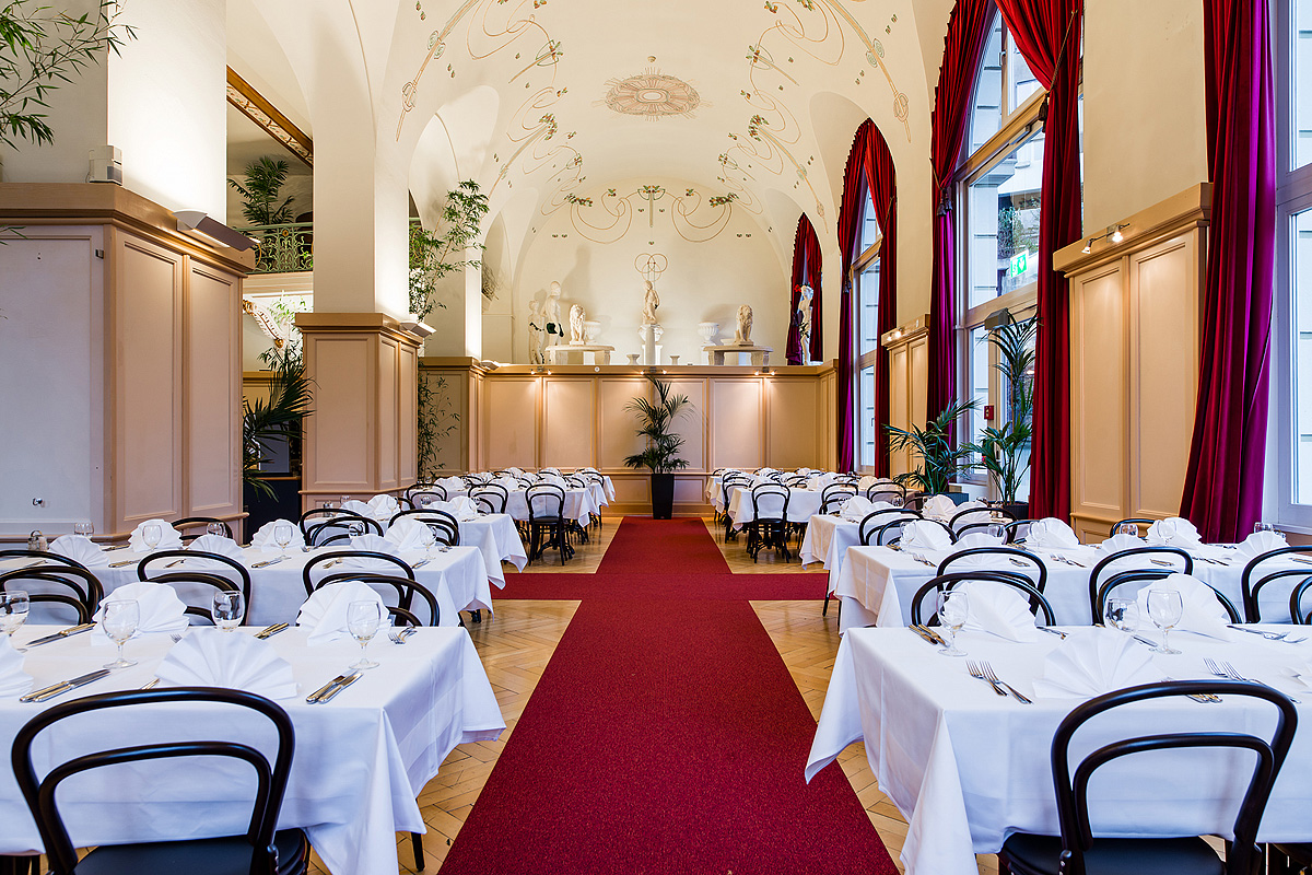 formou bufetu či servírovaného 3chodového menu s výběrem studených předkrmů či polévek, salátů, 2 hlavních jídel, příloh, dezertů; kohoutková voda a 1x 0,2 l rozlévaného červeného či bílého vína během večeře, ostatní nápoje za poplatek
