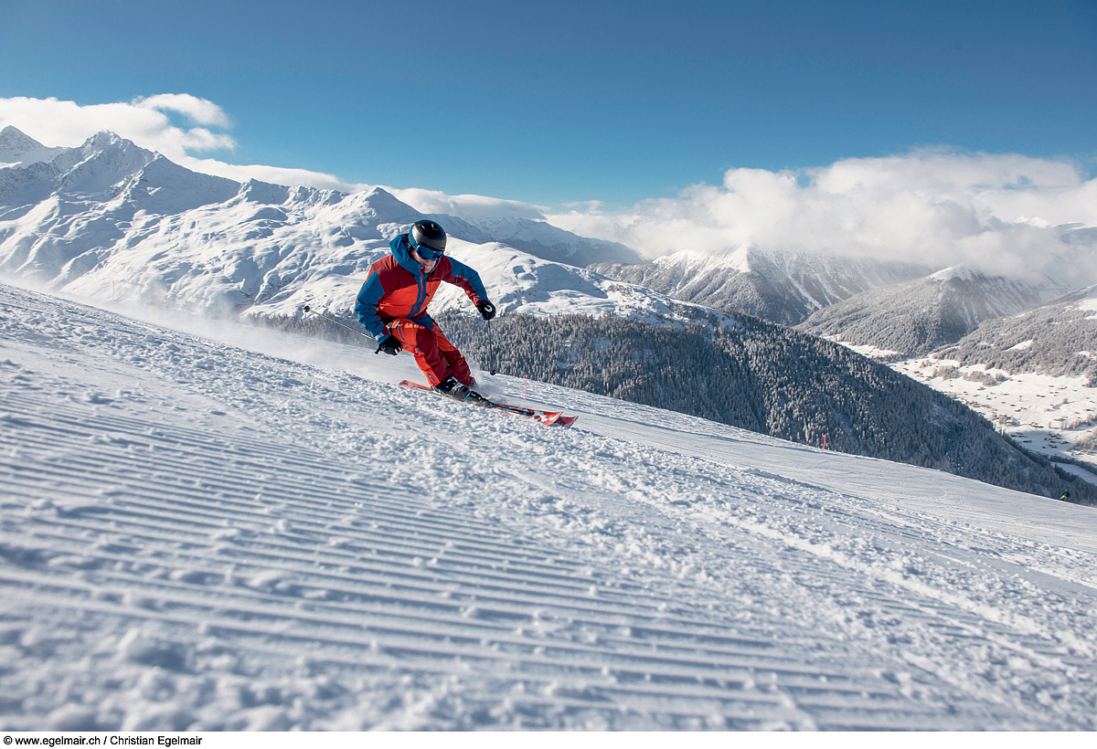 Nadmořská výška až do 3.018 m zaručuje jedny z celoevropsky nejlepších a nejjistějších sněhových podmínek po celou sezónu. Převýšení přes 1.900 metrů je vpravdě úctyhodné a nejdelší sjezdovka v délce 14 km z ledovce Vorab do Flimsu se stane opravdovým testem Vaší vytrvalosti.