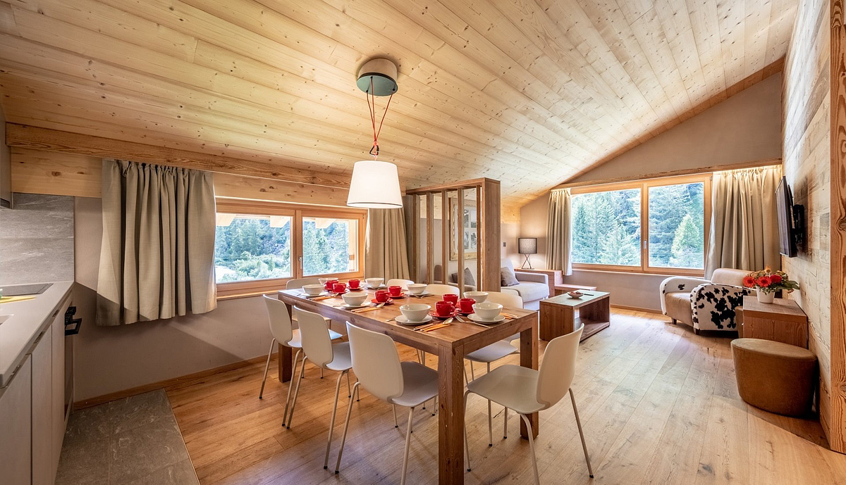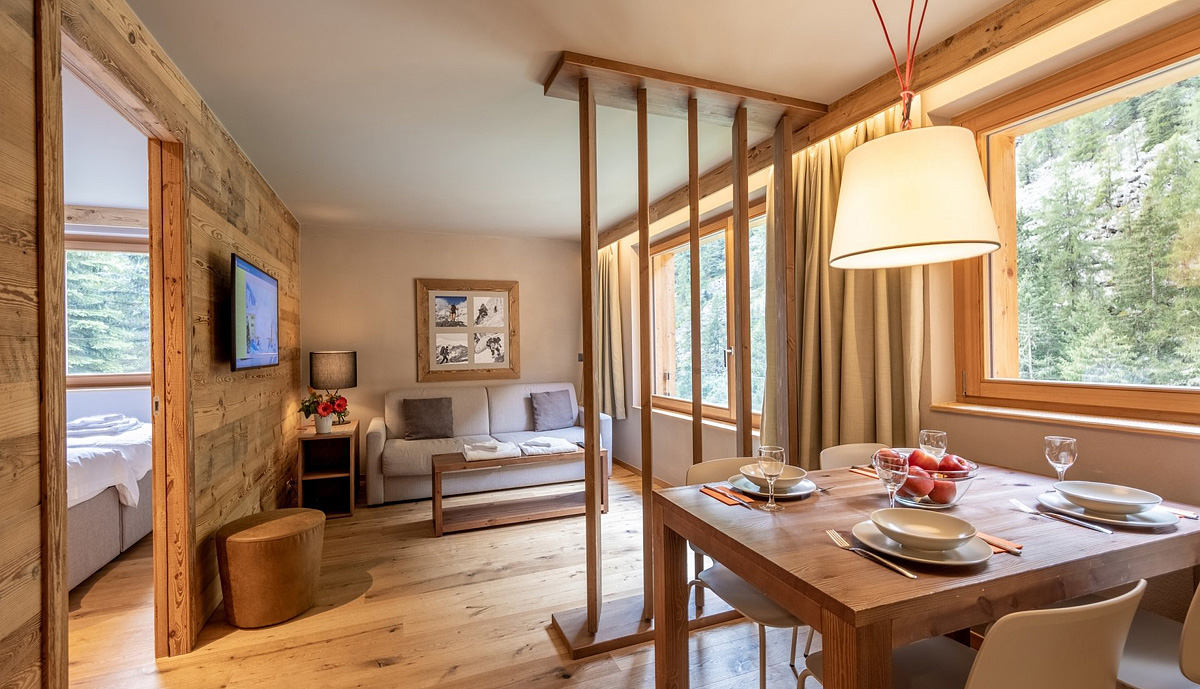 57 až 67 m² - 2 ložnice se 2 samostatnými lůžky, obývací pokoj s kuchyňským koutem a rozkládacím gaučem (šíře 160 cm) pro 2 osoby, sociální zařízení, 1x oddělené WC; apartmán je zpravidla bezbariérový (na zpětné potvrzení)