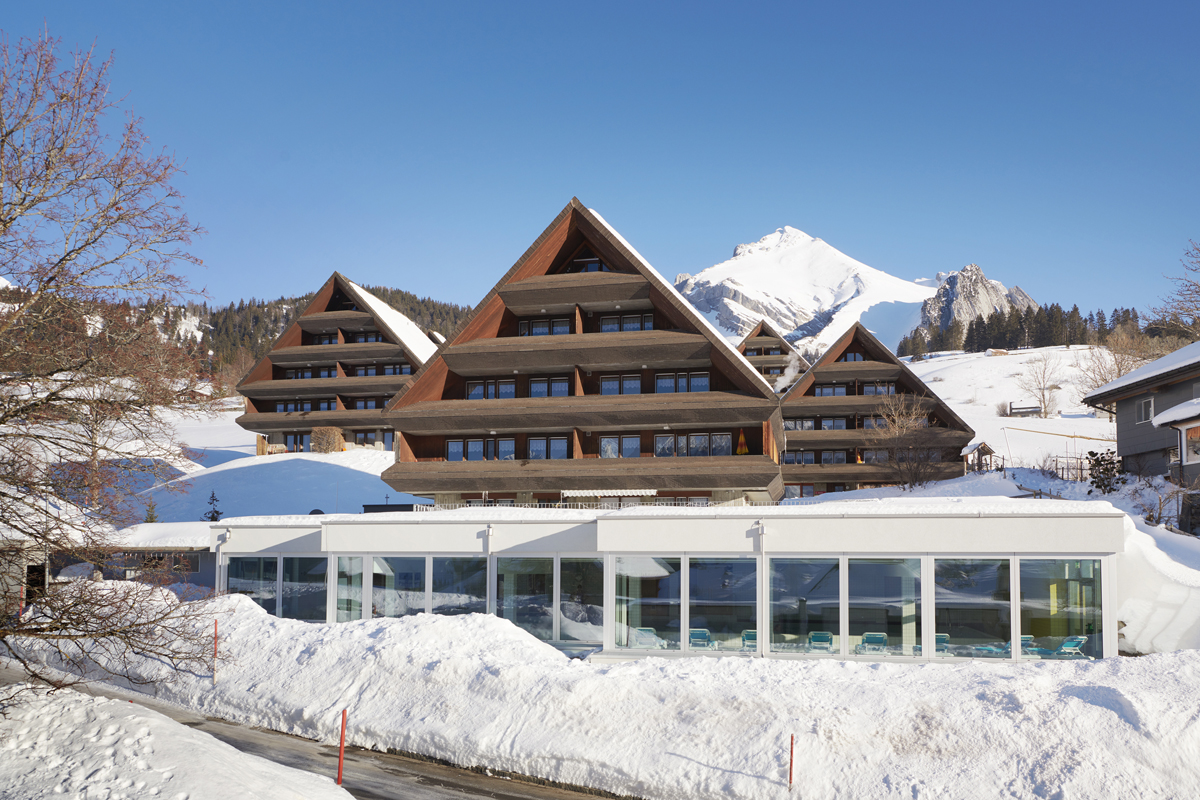 ubytovací komplex skládající se z 7 větších apartmánových budov; všechny níže uvedené služby jsou v různých budovách; apartmány se prodávají bez rozlišení, tedy bez konkretizace budovy, ve které jsou umístěny; budovy nejsou navzájem propojeny; veškeré uvedené vzdálenosti jsou měřeny od centrálního parkoviště