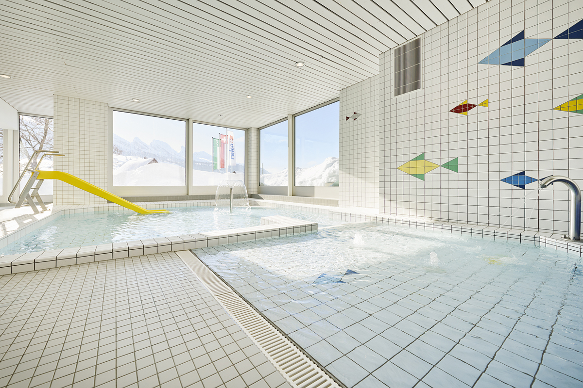 bazén 6 x 16 m s max. hloubkou 1,3 m, herna "teenage" s biliárem, stolním fotbalem a stolním tenisem
